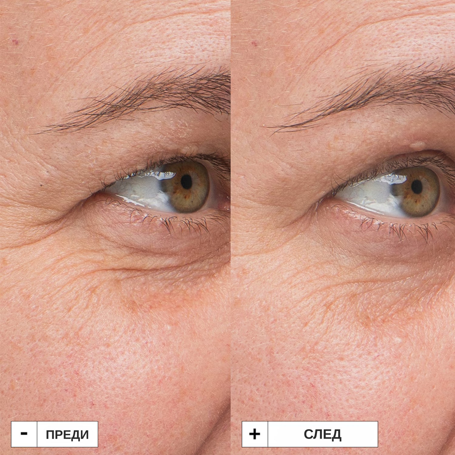По-малко фини линии и бръчки още след няколко нанасяния. Значително по-свежа и сияйна кожа. Растителните екстракти ще успокоят и подхранят в дълбочина, и ще придадат на кожата копринена гладкост и защита срещу външни агресори.